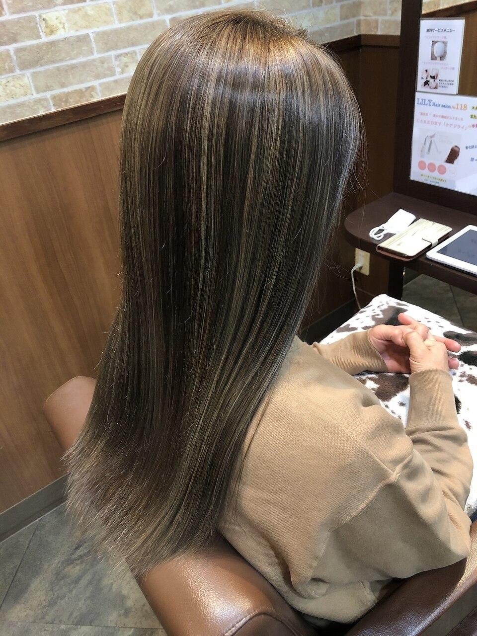 今が旬なハイライト(メッシュ)肩下ロング+2200円
