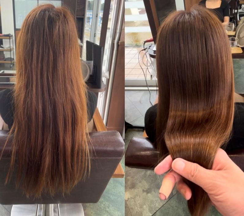 【癖が強い方】【ダメージ最小限】【ツルツルサラサラ・】【毛先は髪質改善システム対応】【毛髪強化剤配合】【内部&外部補修型トリートメント】肩下ロング+1100円